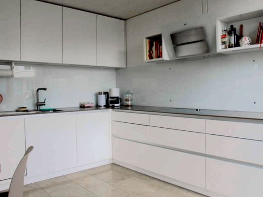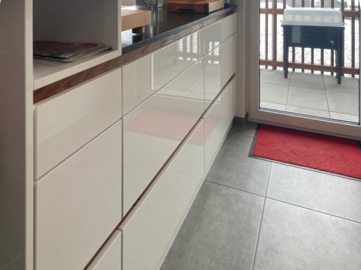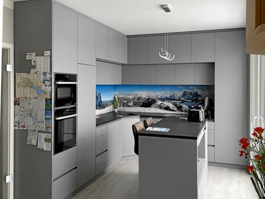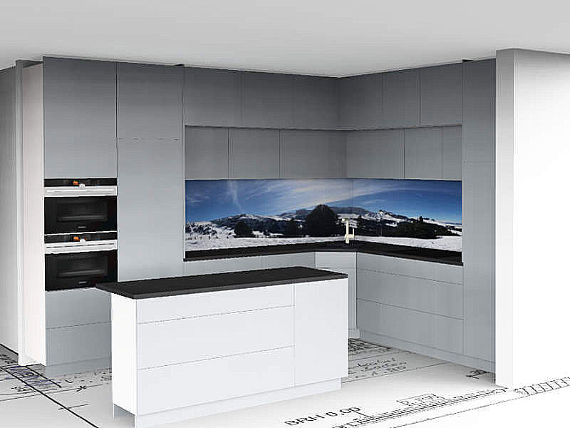 - Komplette Küchenmöbel geplant und gefertigt, Spritzschutz hinter Arbeitsplatte mit Digitaldruck