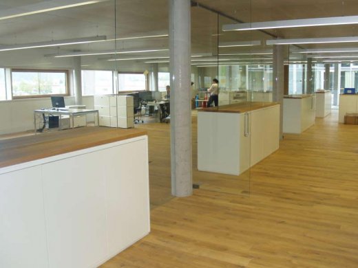 Wir fertigten bei diesem weltweit tätigen Unternehmen der Medizintechnik folgende Schreinerarbeiten: